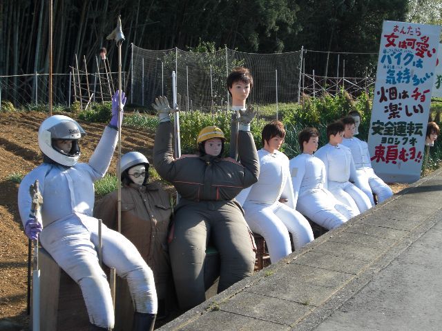 交通安全を呼び掛けるもののようですが…、頭だけのマネキンやその妙に膨らんだ身体が