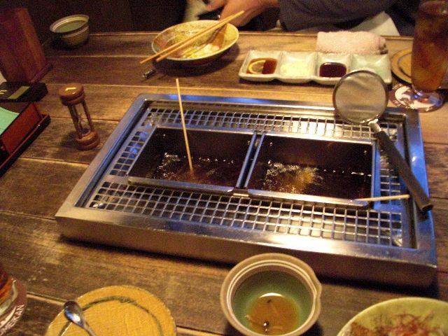 テーブル上のコンロで自分で今一度揚げて食べるというのがここのシステムですが、