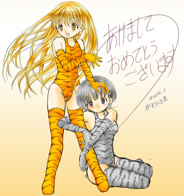 虎柄の水着?レオタード?とニーソックスが可愛らしい、かとりふきさんより。